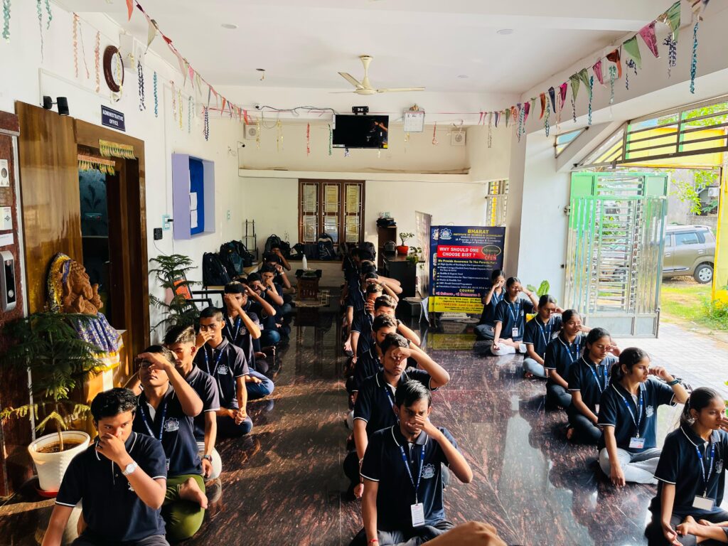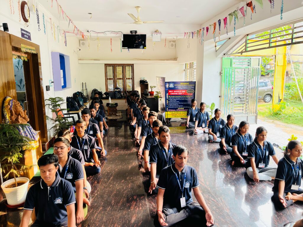 Regular yoga sessions are organized to improve concentration, reduce stress, and build physical fitness. Through breathing exercises and meditation, students learn balance of mind and body, which supports their studies and personal growth.